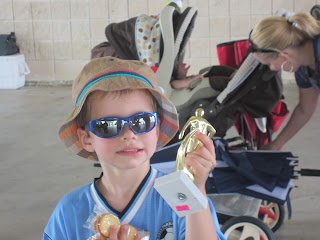 At the end of the season all of the kids received participation trophies. Loyd is pretty proud of his and has carried it around the house for 2 days now.