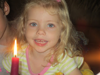 They were a bit harder to blow out than your standard birthday candle, so after a few minutes of heroic, happy huffing and puffing on Maeve's part we had a couple of very obligation big brothers sneakily help her blow them out. Big brothers are the best at helping a kid sister out of any kind of jam. :)